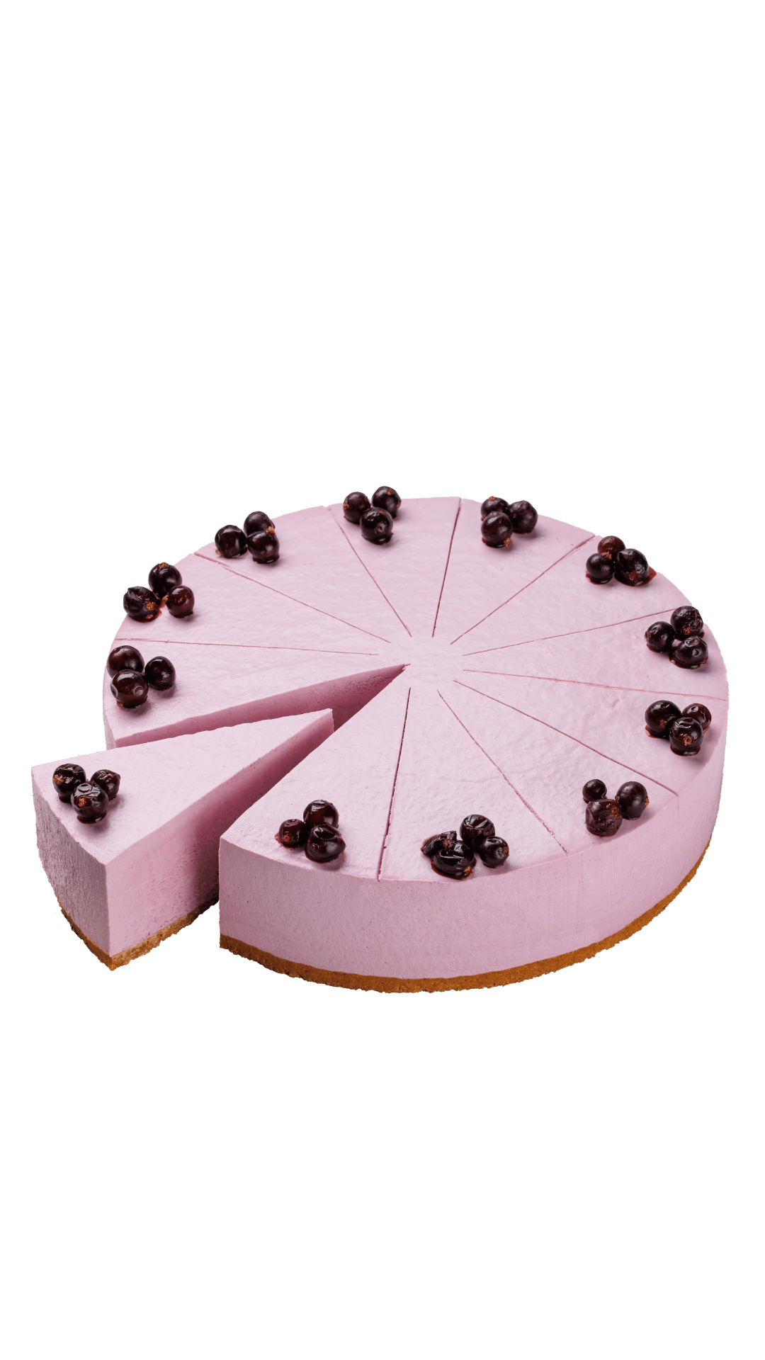 Biscuiți de lapte, unt, cremă de brânză, zahăr pudră, gălbenuș de ou, frișcă bătută, gelatină, coacăză neagră